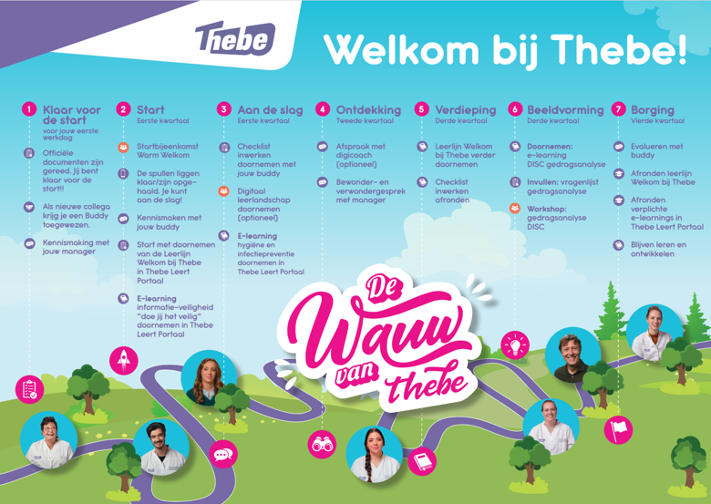 We vinden het belangrijk dat je je welkom voelt en goed wordt ingewerkt, zodat je met plezier kunt starten bij Thebe. Daarom hebben we het leerlijn Welkom bij Thebe-traject ontwikkeld.