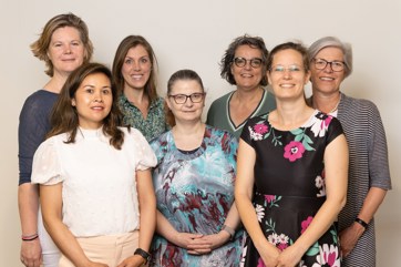 Vlnr: Charlotte van Weerelt (SO), Vanessa Kartonadi (medisch secretaresse), Janneke Kraan (SO), Joyce Geurts (SO), Irene Leijten (Hoofdopleider en SO), Erica Bröcking (Waarnemend opleider en SO) en Mechtild Wijdeveld (SO).